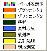 色ルールは、スケジュールオブジェクトの背景色に利用する想定で作られています。色ルールが利用できるのは、メイン画面のパレットダイアログバーの「背景色」とスケジュールプロパティ画面の「背景色」です。それ以外の色(枠線の色など)ではパレットのみが利用可能です。