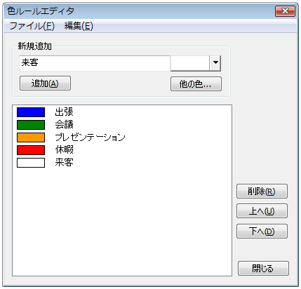 色ルールの実体は、テキストファイルです。色ルールは、色ルールエディタで作成または編集をすることができます。メインメニューの[ツール]→[色ルールエディタ]で利用できます。